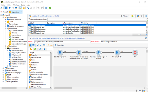 Les workflows de réplication ci-dessous sont disponibles en tant que modèles « prêts à l'emploi ». Ils doivent être mis en œuvre par votre consultant Adobe Campaign.