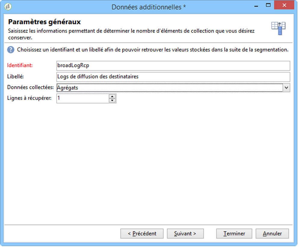 Dans le champ Données collectées, sélectionnez Agrégats, puis cliquez sur Suivant.
