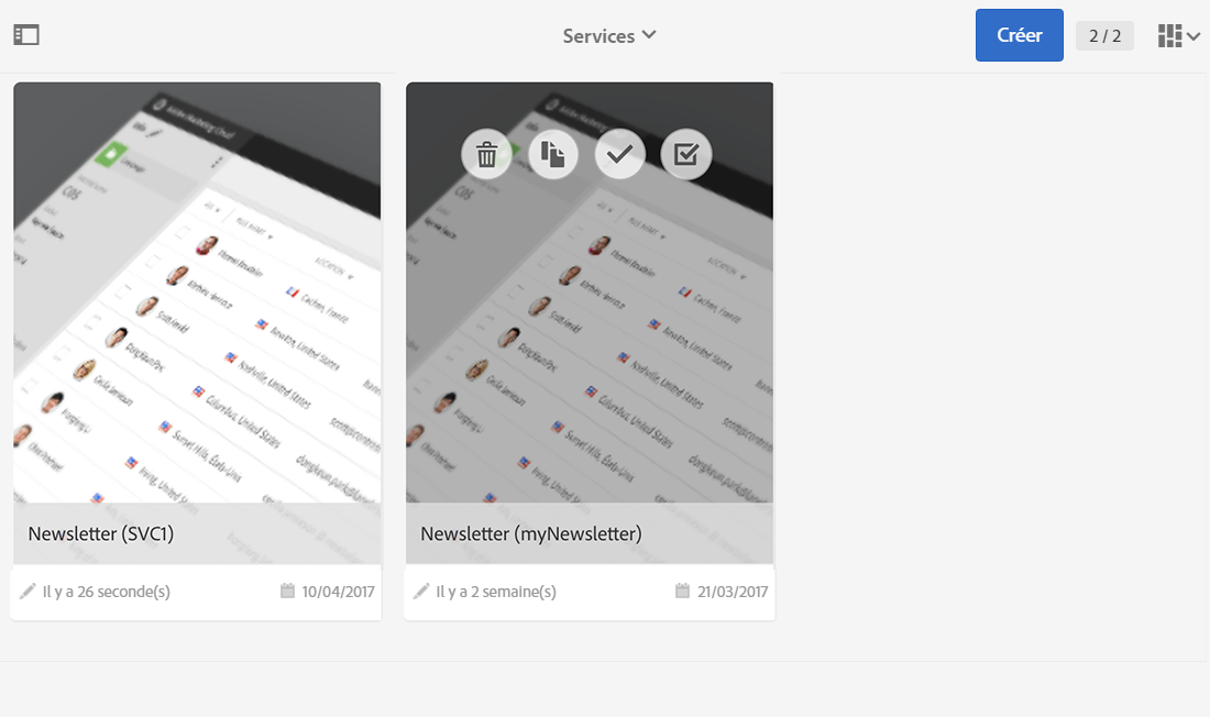 Cliquez sur le logo Adobe Campaign, en haut à gauche, sélectionnez Profils & audiences > Services, puis vérifiez que le service de newsletter apparaît également.