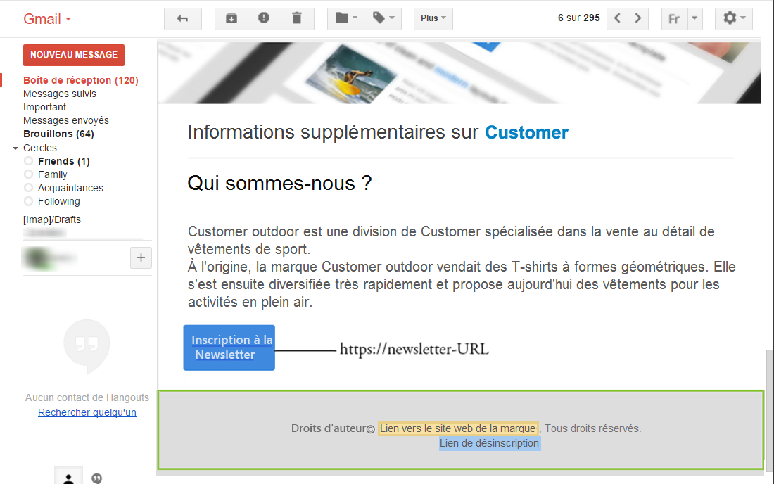 Un des destinataires ouvre l'email et clique sur le lien d'inscription à la newsletter.