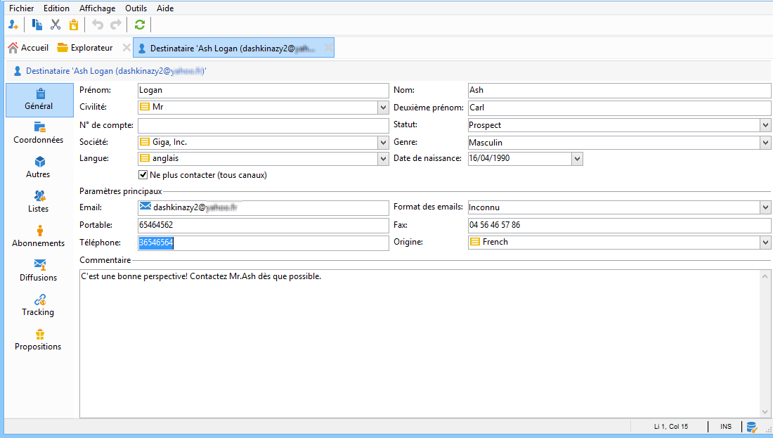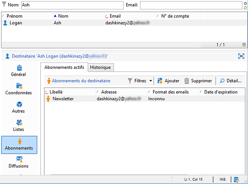 Dans l’onglet Abonnements, vous pouvez également constater que le destinataire s’est inscrit au service de newsletter.