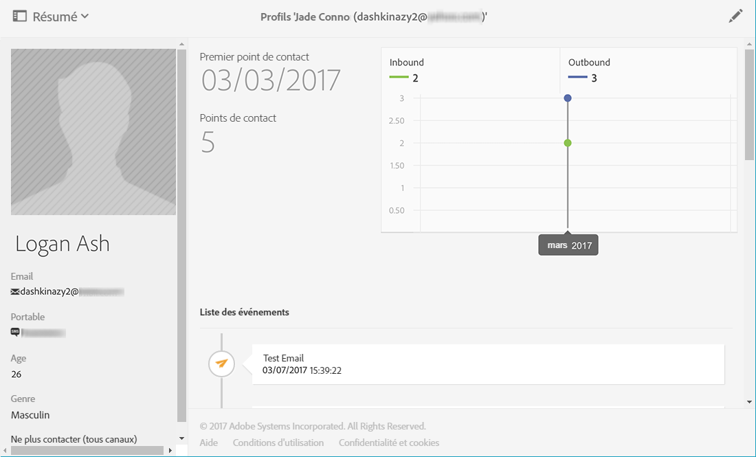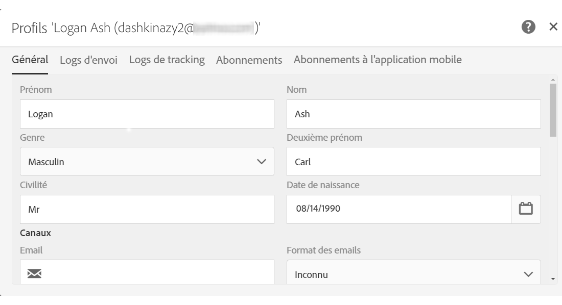 Dans Campaign Standard, accédez au profil de votre destinataire pour vérifier que les données mises à jour ont été correctement répliquées depuis Campaign v7.