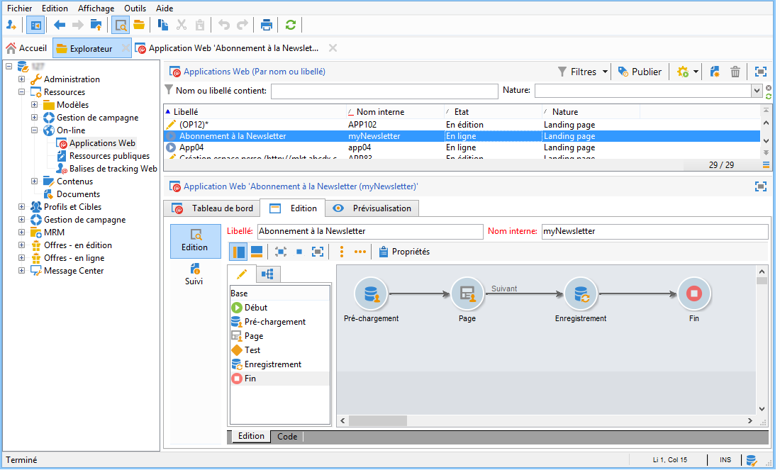 Dans cette partie, nous allons voir comment inclure un lien vers la landing page répliquée depuis une application web de Campaign v7 dans un email Campaign Standard.