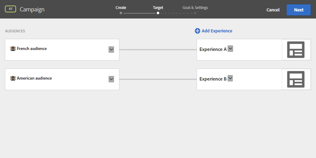 Créez une autre expérience en cliquant sur Ajouter le ciblage d'expérience.