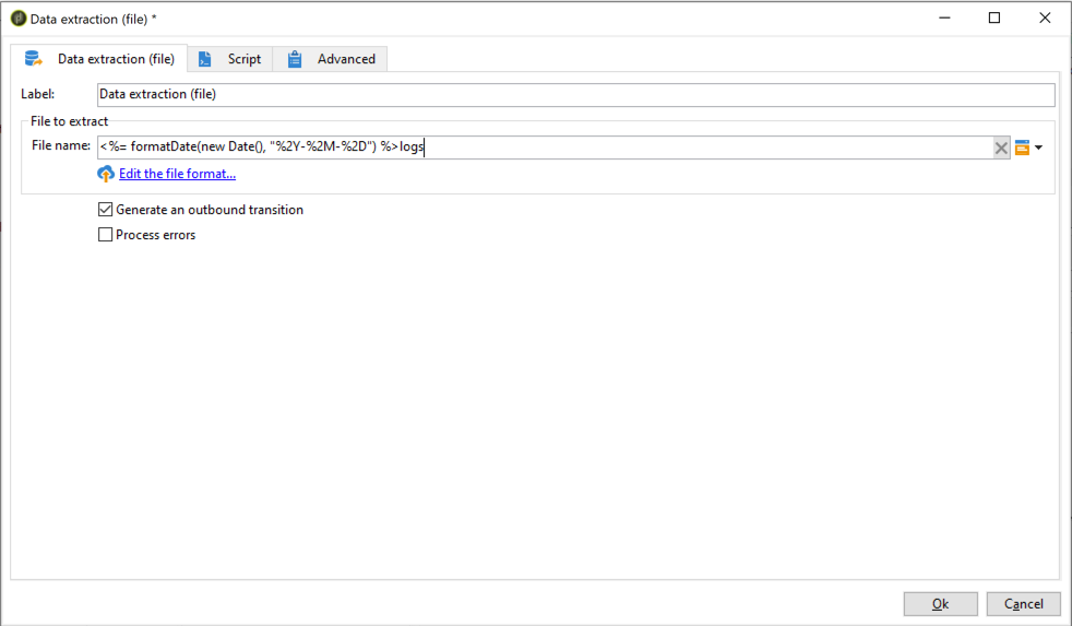 A File transfer 활동을 통해 CSV 파일을 저장 위치에 전송합니다. 이 활동을 구성하는 방법에 대한 자세한 내용은 이 섹션.