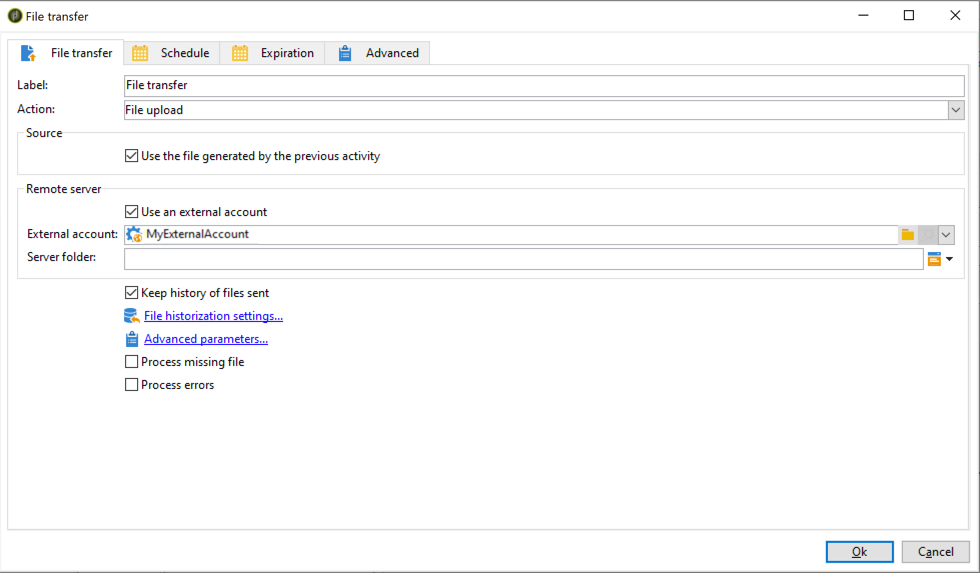 이를 수행하려면 다음을 추가하고 구성해야 합니다 File transfer 활동. 이 활동을 구성하는 방법에 대한 자세한 내용은 이 섹션.