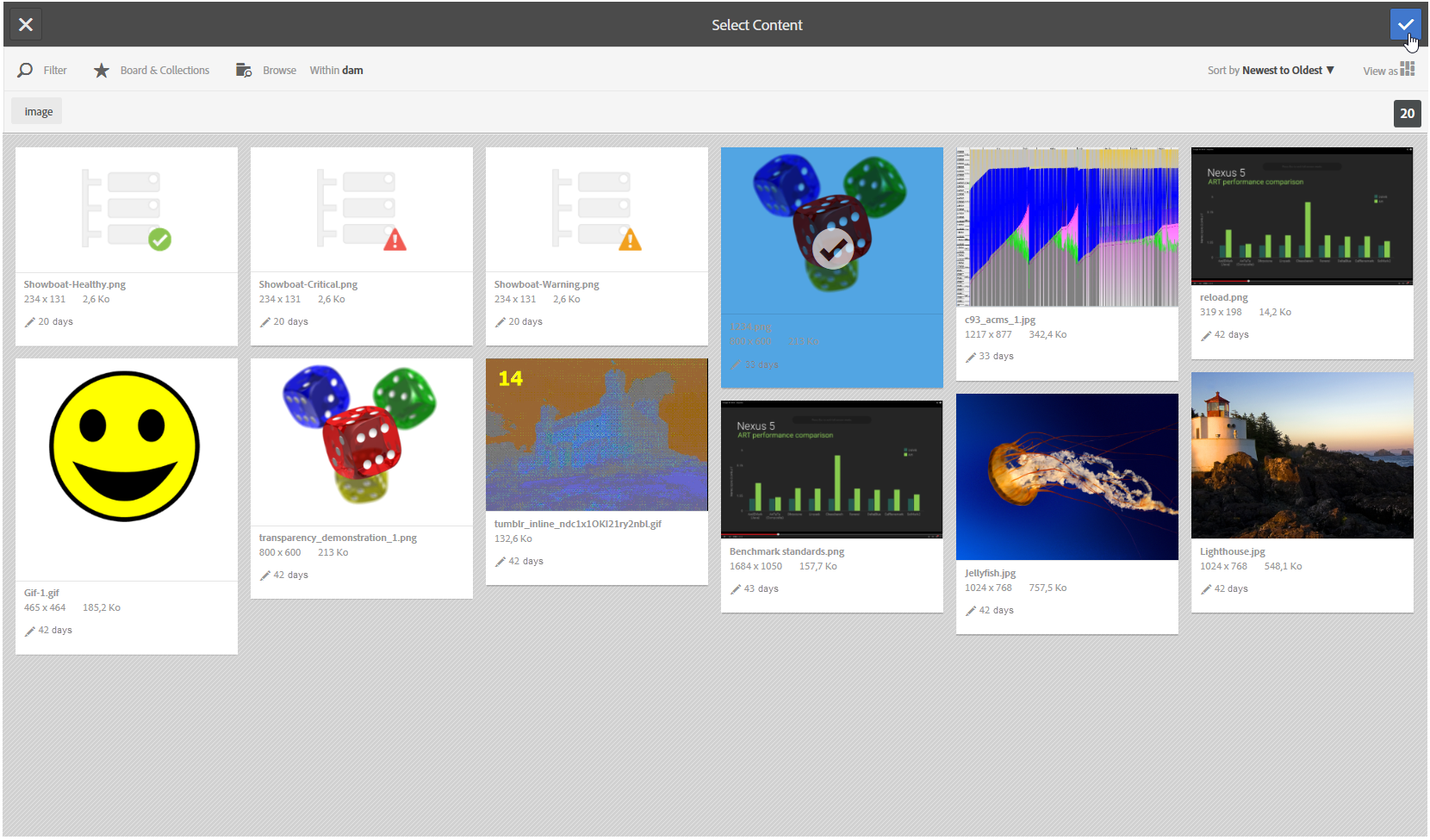 사용 가능한 이미지는 Adobe Campaign 인스턴스가 구성되는 방법에 따라 Adobe Experience Cloud 라이브러리 또는 AEM Assets 라이브러리에서 제공됩니다. 자세한 내용은 자산에 대한 액세스 구성 섹션을 참조하십시오.