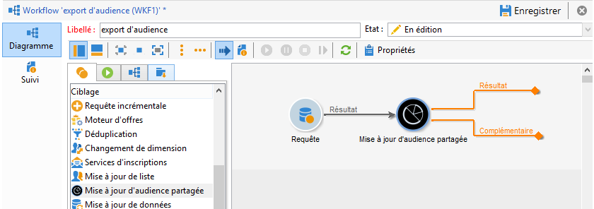 A la suite du ciblage, placez une activité Mise à jour d'audience partagée puis ouvrez-la.