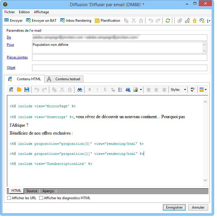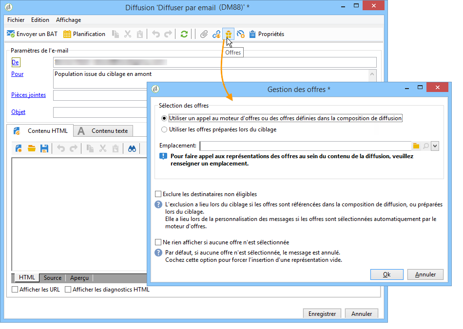 Editez la diffusion email et cliquez sur l'icône Offres.