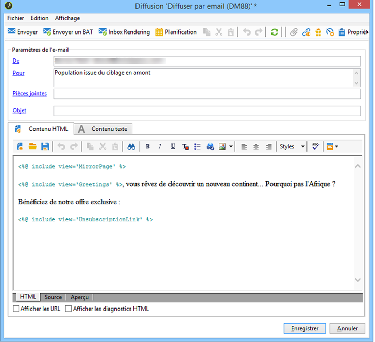 Fermez la fenêtre de gestion des offres et créez le contenu de votre diffusion.