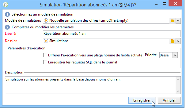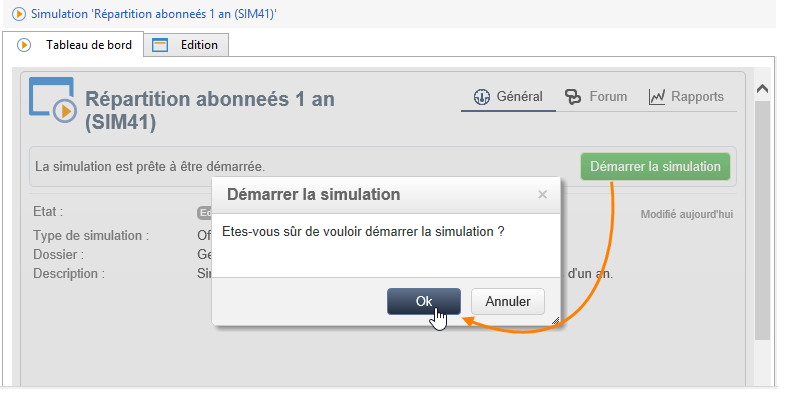 Enregistrez vos paramètres puis cliquez sur Démarrer la simulation, sur l'onglet Tableau de bord, pour lancer la simulation.
