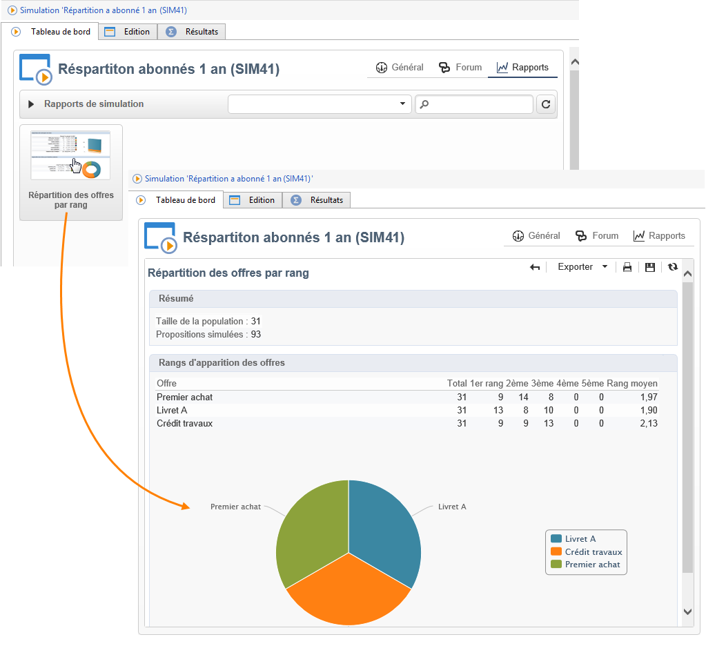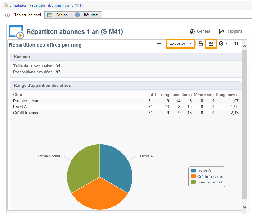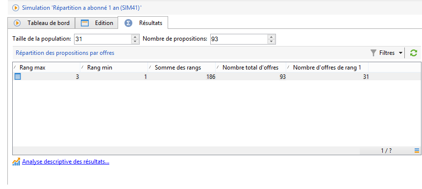 Lorsque la simulation est terminée, consultez les Résultats pour connaître la répartition des propositions par offres.