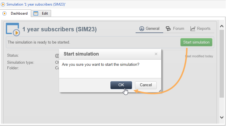 설정을 저장한 다음 Start 에서 Dashboard 탭을 사용하여 시뮬레이션을 실행합니다.