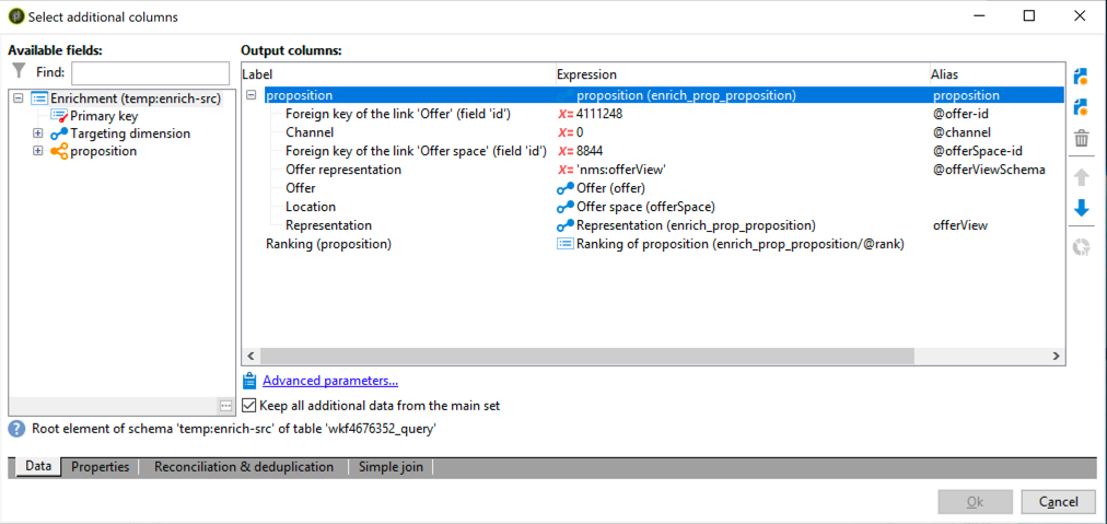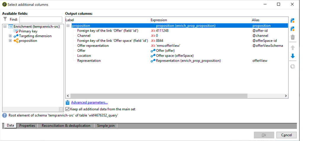 예를 들어, 데이터 보수정에서 수동으로(상호 작용 없이) 오퍼를 선택할 때 표준 필드는 다음과 같이 정의됩니다.