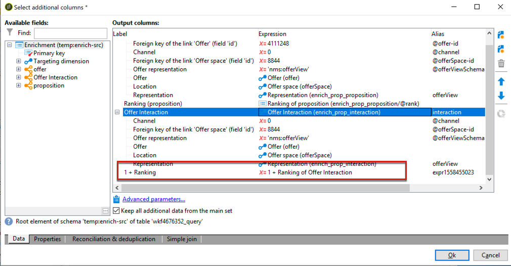 상호 작용을 사용하고 오퍼를 수동으로 선택할 때 사용자는 두 접근 방식을 결합할 수 있습니다. 예를 들어, 사용자는 수동으로 선택한 오퍼에 대해 @rank 필드를 1로 수동으로 설정하고, 상호 작용에 의해 반환된 오퍼에 대해 "1 + @rank"과 같은 표현식을 사용할 수 있습니다. 상호 작용이 세 개의 오퍼를 선택한다고 가정할 경우, 두 접근 방법 모두에서 반환되는 오퍼는 1-4로 평가됩니다.