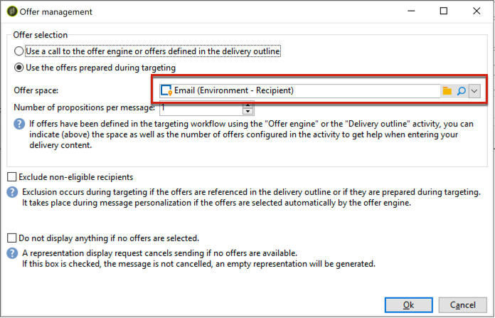 아래 예에서는 게재에서 선택한 오퍼 공간이 있습니다 Email (Environment - Recipient):