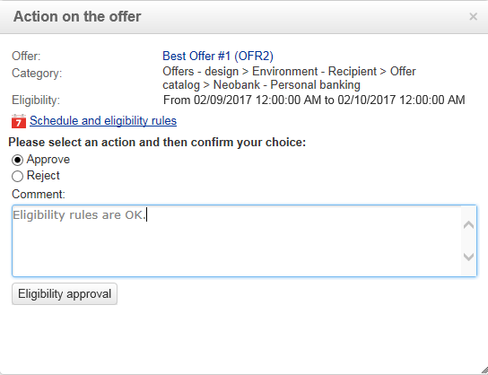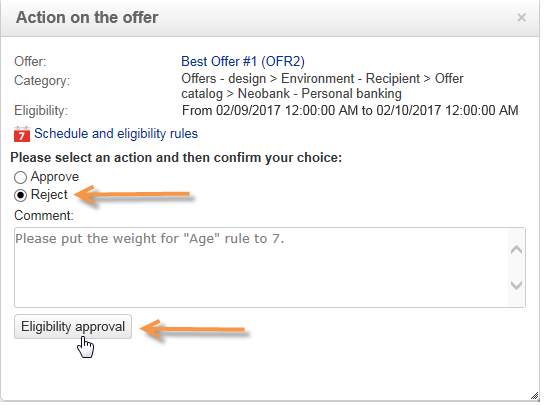 자격 규칙을 변경하려면 Reject를 클릭한 다음 Eligibility approval.