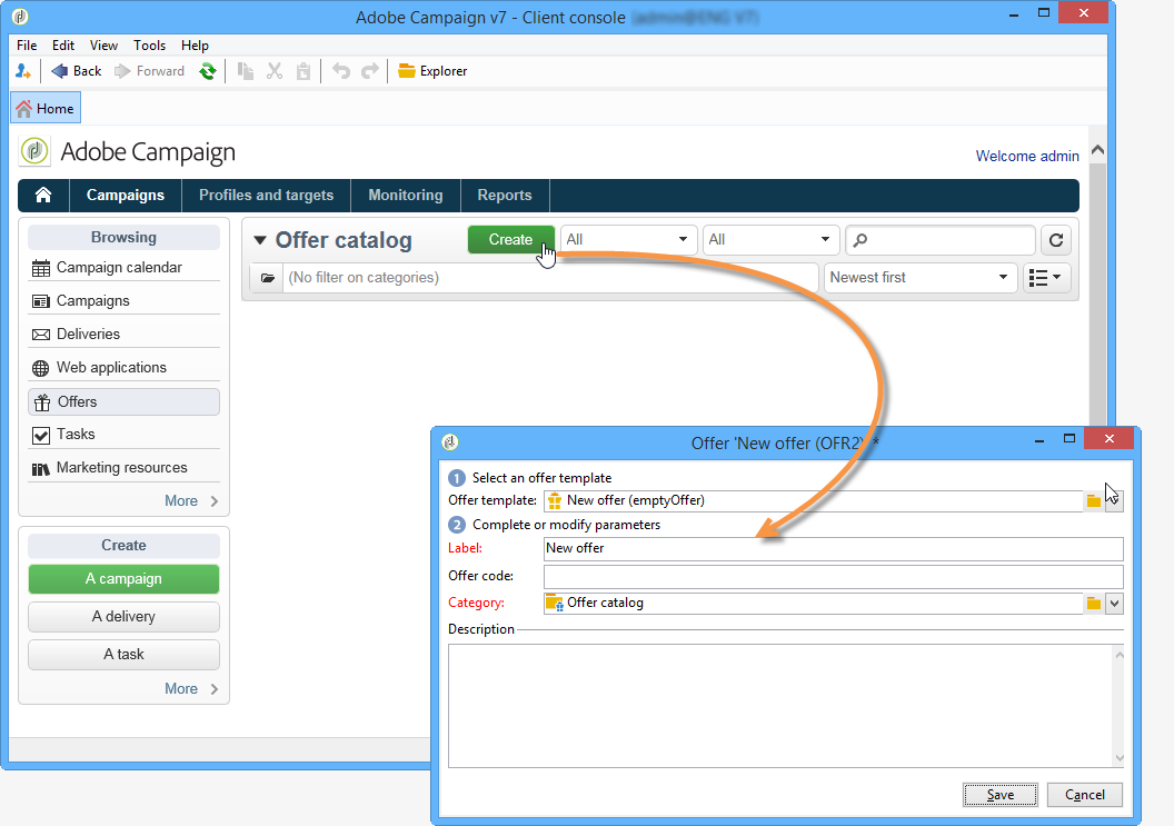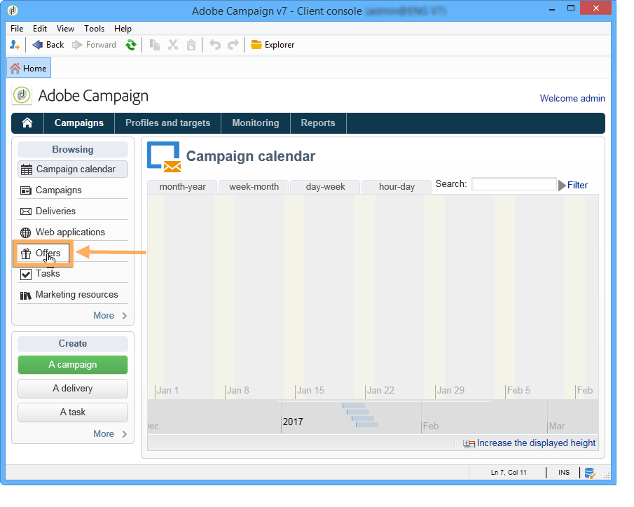 로 이동합니다. Campaigns 탭을 클릭하고 Offers 링크를 클릭합니다.