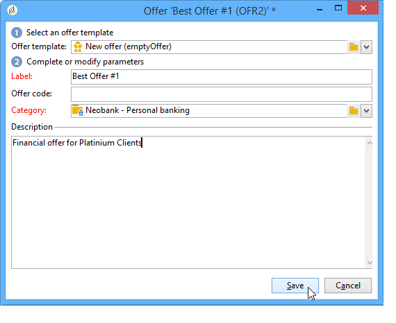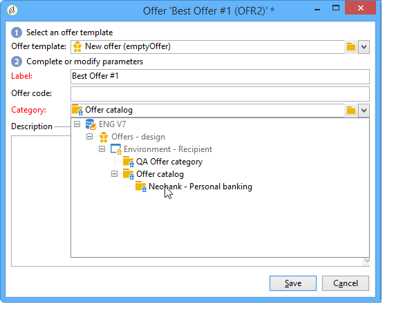 레이블을 변경하고 오퍼가 속해야 하는 카테고리를 선택합니다.