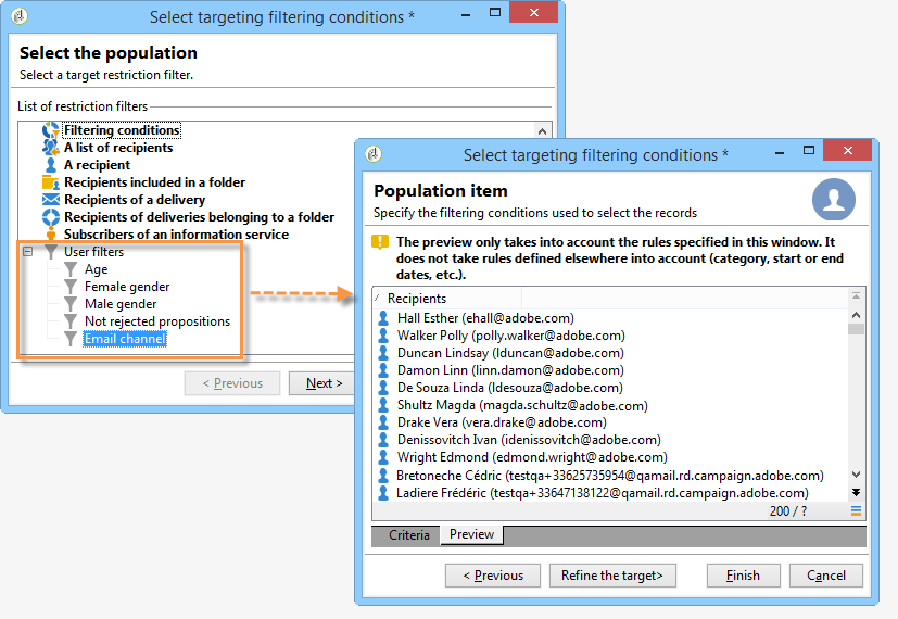 사전 정의된 필터가 이미 만들어진 경우 사용자 필터 목록에서 해당 필터를 선택할 수 있습니다. 자세한 내용은 사전 정의된 필터 만들기.