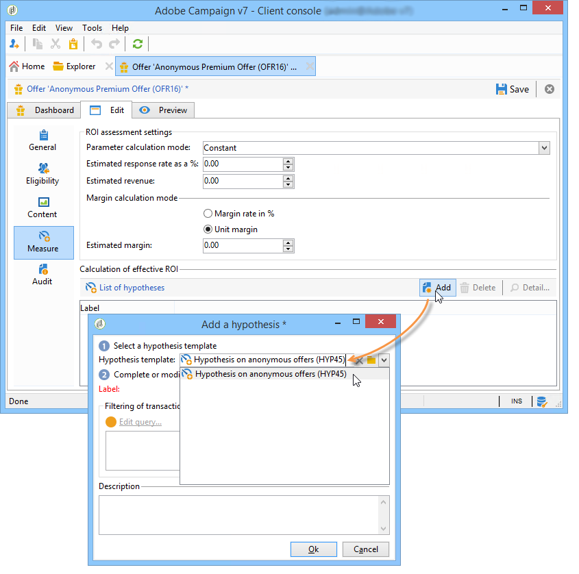 오퍼 제안에 대해 수행된 가설이 해당 오퍼에서 참조됩니다 Measure 탭.