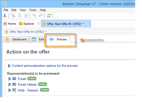 오퍼 컨텐츠가 구성되면 수신자에 대해 표시될 오퍼를 미리 볼 수 있습니다. 방법은 다음과 같습니다.
