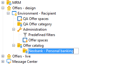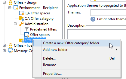 마우스 오른쪽 단추를 클릭하고 을 선택합니다 Create a new “Offer category” folder 드롭다운 목록에서 을 선택합니다.