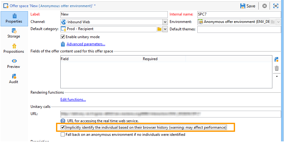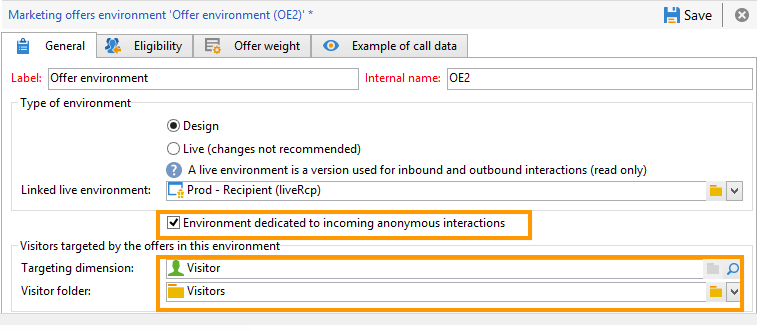 매핑 생성 마법사를 통해 익명 환경을 만들면 Environment dedicated to incoming anonymous interactions 이 상자는 환경의 General 탭.