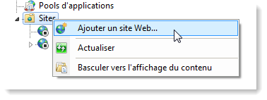 Cliquez avec le bouton droit sur le dossier Sites et sélectionnez Ajouter un site Web.