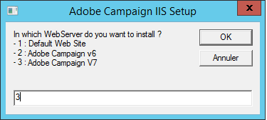 Saisissez le numéro du site Web que vous avez créé précédemment pour Adobe Campaign v7 et cliquez sur OK.