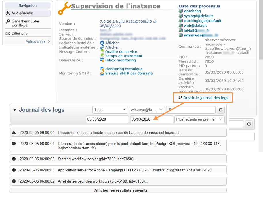 Number of processes too old : informations relatives aux processus Adobe Campaign en cours depuis plus d'une journée.