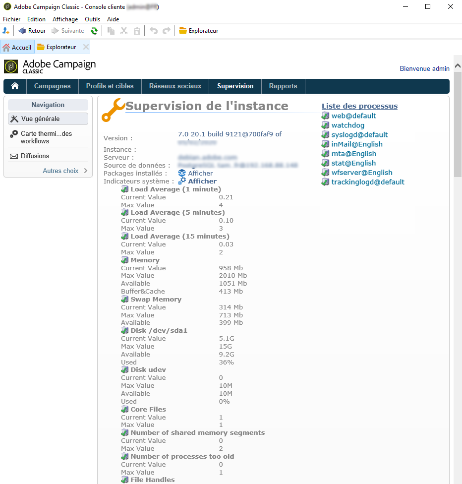 Cet outil peut être utilisé pour surveiller votre instance mais il n'est pas pris en charge par Adobe Campaign. Contactez votre administrateur de Campaign pour plus d'informations.