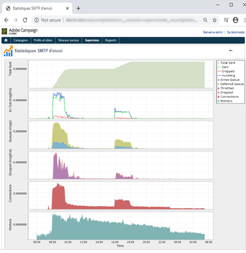 Les rapports de monitoring sur les envois SMTP sont intégrés dans la plateforme Adobe Campaign. Ils sont accessibles via la console ou un accès Web.