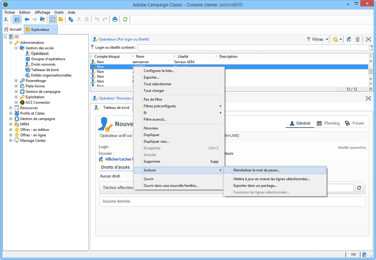Si un opérateur Adobe Campaign perd son mot de passe, vous pouvez le changer.