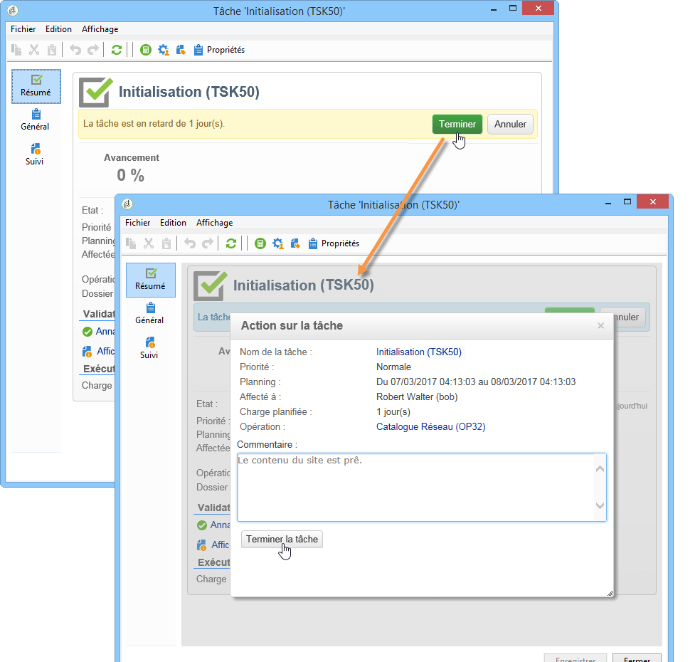 Pour plus d'informations, voir la section Etat d'avancement d'une tâche.