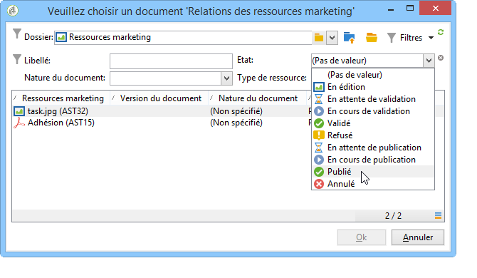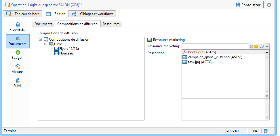 Cliquez sur Ok pour ajouter la ressource dans la liste des ressources marketing référencées pour cette opération.