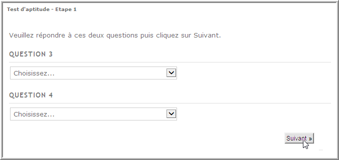 Lorsque vous affichez aléatoirement telle ou telle question (option Tirage aléatoire des questions cochée au niveau de la page), vous devez veiller à ne pas utiliser dans ces questions des listes à choix multiples dans lesquelles une ou plusieurs sélections sont obligatoires.