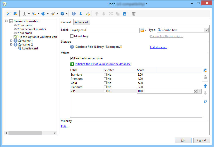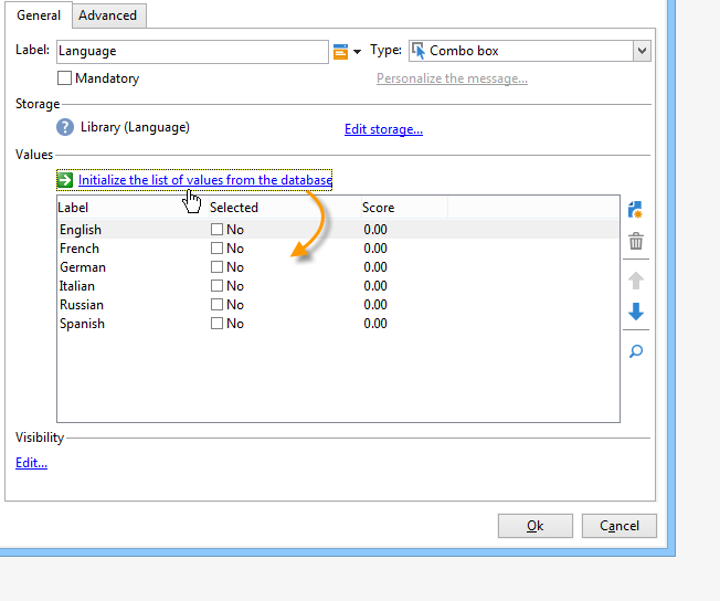 에서 General 필드의 탭, Initialize the list of values from the database 링크를 사용하면 제공된 레이블 목록을 자동으로 입력할 수 있습니다.