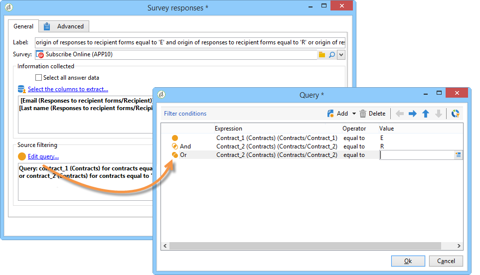 답변에 따라 수신자를 필터링하여 원하는 사용자만 표시할 수도 있습니다. 이렇게 하려면 타겟팅 워크플로우를 만들고 을(를) 사용합니다. Survey responses 상자.
