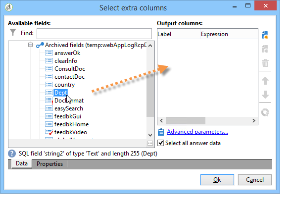추출할 열을 선택합니다(이 경우: 선택: 모든 보관된 필드입니다. 답변이 포함된 필드입니다.