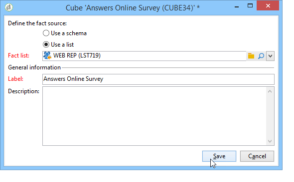 이 예에서 큐브는 이전에 만든 워크플로에서 제공한 목록의 데이터를 기반으로 합니다.