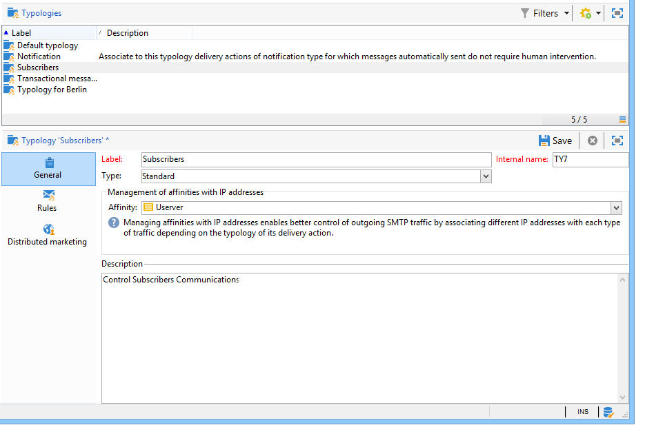 유형화는 Administration > Campaign Management > Typology management > Typologies 노드 아래에 있어야 합니다.