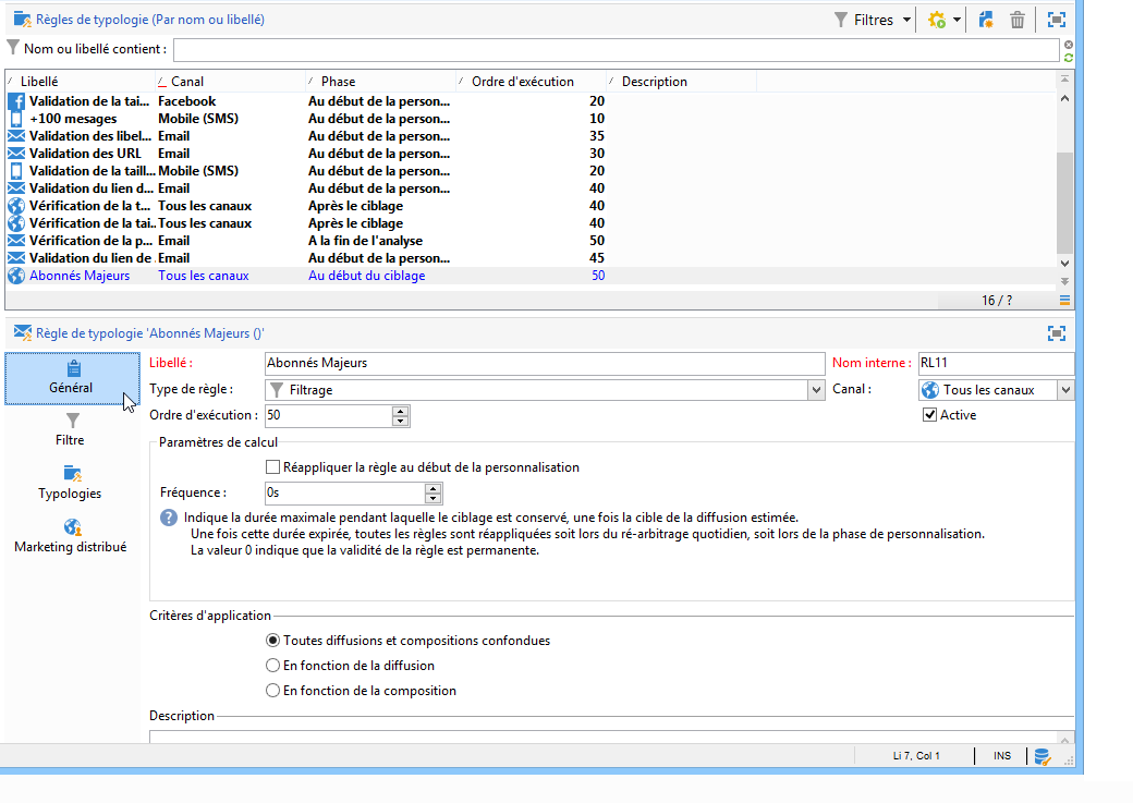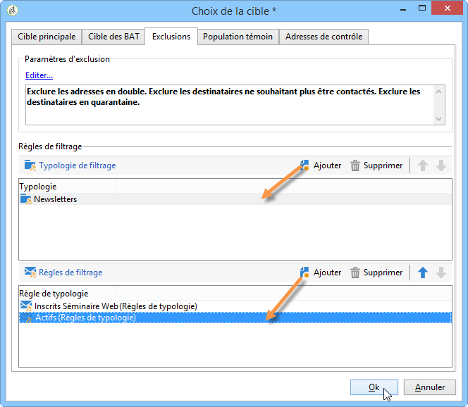 Associez cette règle à une typologie de campagne et enregistrez-la.
