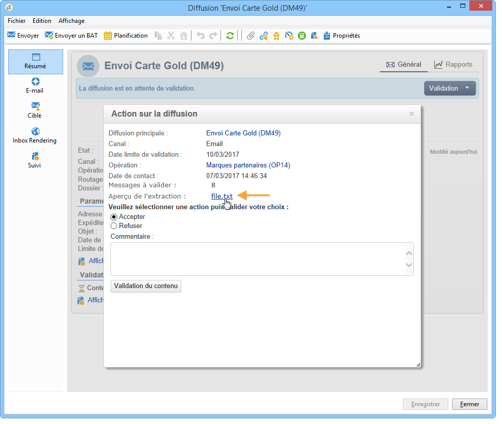 Vous pouvez visualiser un aperçu du fichier d'extraction à partir de la boîte de validation puis accepter ou non la validation.