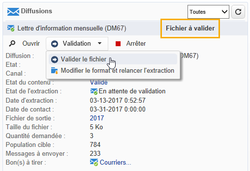 Valider l'extraction (diffusion courrier)