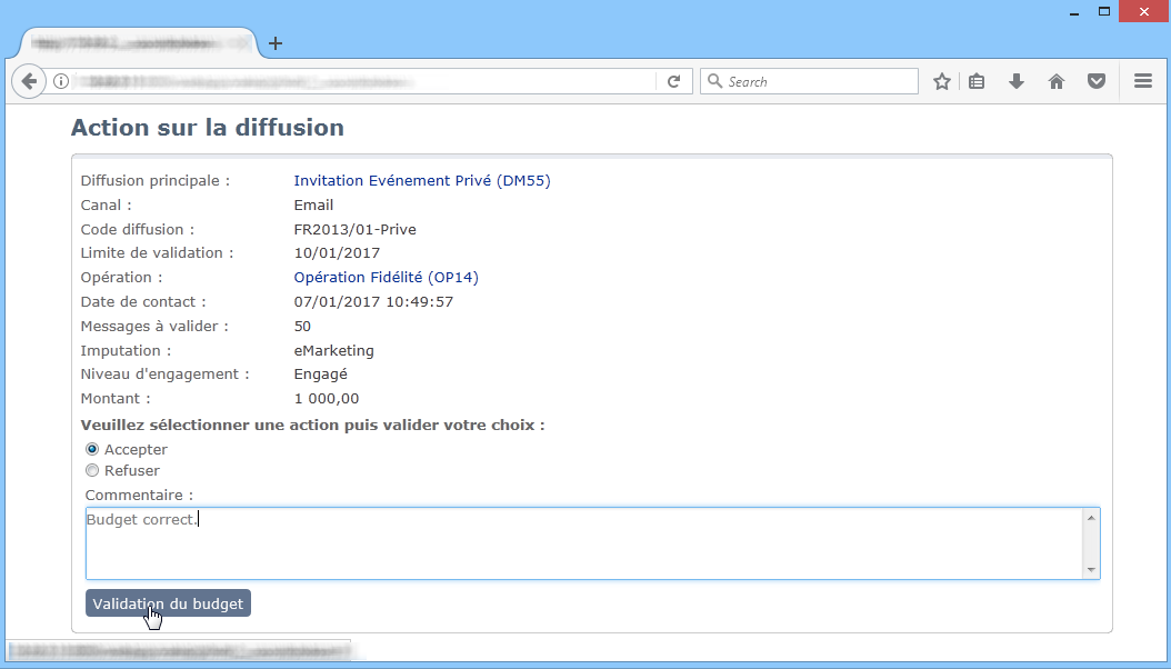 Les opérateurs validants peuvent alors choisir de valider ou non le budget.