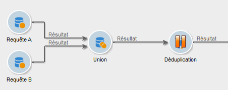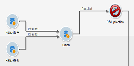 Il est possible de lancer des requêtes puis de partager les populations via des boîtes de type Union, Intersection, Partage, Exclusion, etc.