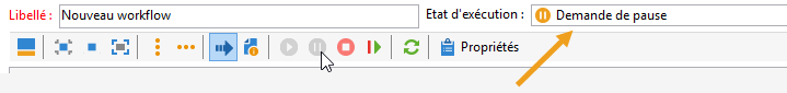 Les icônes de la barre d'outils permettent d'arrêter ou suspendre un workflow de ciblage en cours d'exécution.