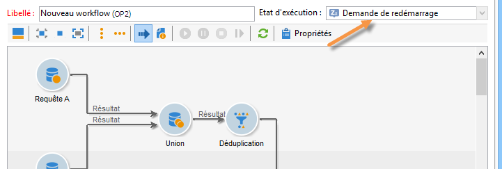 Les icônes de la barre d'outils permettent d'agir sur l'exécution du workflow de ciblage.