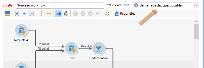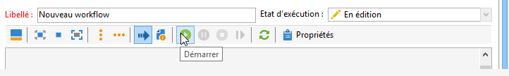 Les workflows de ciblage peuvent être lancés manuellement via le bouton Démarrer de la barre d'outils, sous réserve que vous disposiez des droits adéquats.